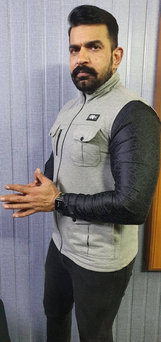 Premium Cotton Fleece Four Pocket sleeveless Jacket Haider Grey 13