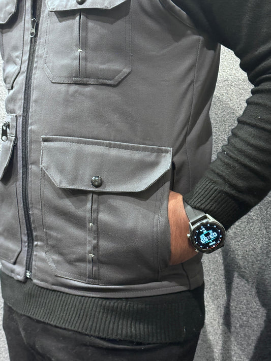 Premium Cotton Fleece Four Pocket sleeveless Jacket Grey Jkt-02