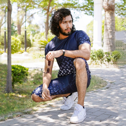SAVE 21%E LV Navy Blue Twin Suit For Men